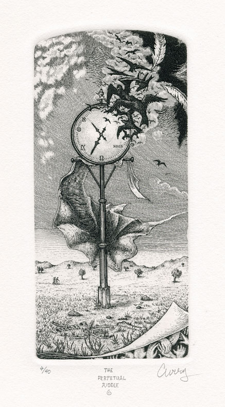 Title: The Perpetual Riddle Year: 2002 Medium: etching Dimensions: 6" x 2-7/8" Edition Size: 40 Paper: Zerkall Copperplate (13" x 9") Price: $380.00 View Actual Size